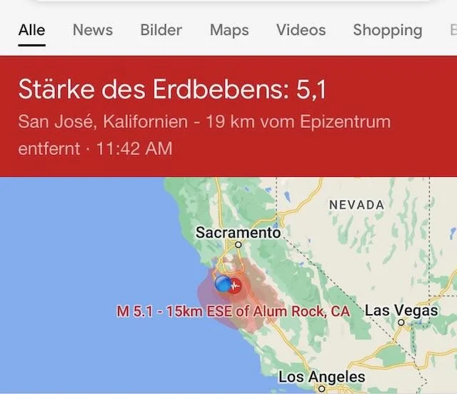 Das Erdeben war von hier mit 19 km Entfernung und einer Stärke von 5,1 doch nennenswert. Ich habe es hier zu Hause nur ein wenig gemerkt in dem Moment als auch schon meine Uhr mir das Beben angezeigt hat. Die empfohlene Maßnahme habe ich aber dann doch ignoriert und mich nicht unter einen Tisch gesetzt. Schaden gab es glücklicherweise keinen und es beruhigt zu wissen, dass eine Alarmierung funktioniert. Wobei ich mich nicht erinnern kann, dass ich mich für eine Alarmierung irgendwo registriert habe..