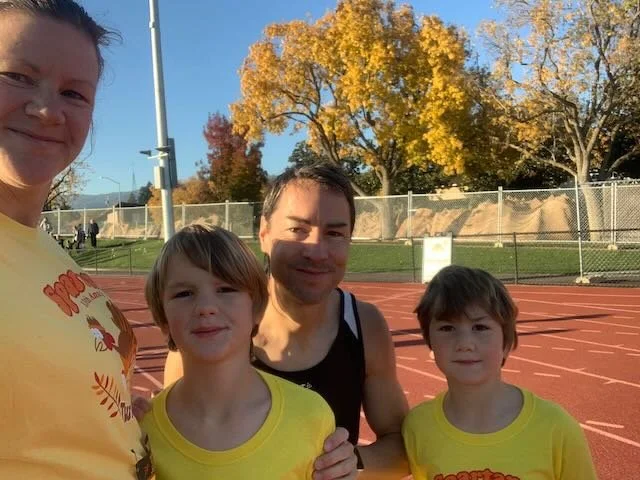24.11.2022: Diese Woche stand ganz im Zeichen von Thanksgiving. Auch diese amerikanische Tradition probieren wir aus. Eine schöne Tradition finde ich die der sog. Turkey Trots. Einen Lauf vor dem Festessen. Und da es von der Mountain View High School direkt hier um die Ecke einen solchen Lauf gab, habe ich uns alle angemeldet und wir sind gelaufen. Schön, dass wir mit dem Fahrrad anreisen konnten. Eigentlich dachte ich, dass die Jungs die eine Meile laufen und Katrin und ich die 5 Kilometer. Da die Jungs aber keine Lust hatten uns per Fahrrad oder Roller zu begleiten sind sie kurzerhand die 5 km bei Katrin mitgelaufen ;-) Ich war etwas schneller unterwegs und habe die Top 10 knapp verpasst.