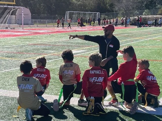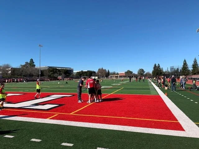 Sonntag ging es dann mit Raphael zum Flag Football. Bevor wir nach Kalifornien gekommen sind wusste ich nicht was das ist…Letztendlich ist es Football für Kinder. Wie richtiges American Football nur ohne Körperkontakt. D.h. umtakeln ist verboten. Um einen Spieler aufzuhalten muss man ein Band (flag) welches an einem Gürtel um die Hüfte befestigt ist abziehen. Auch hier ist alles durch App und ehrenamtliche Eltern gut organisiert. Hierfür gibt es auch eine eigene Liga und entsprechendes Equipment.