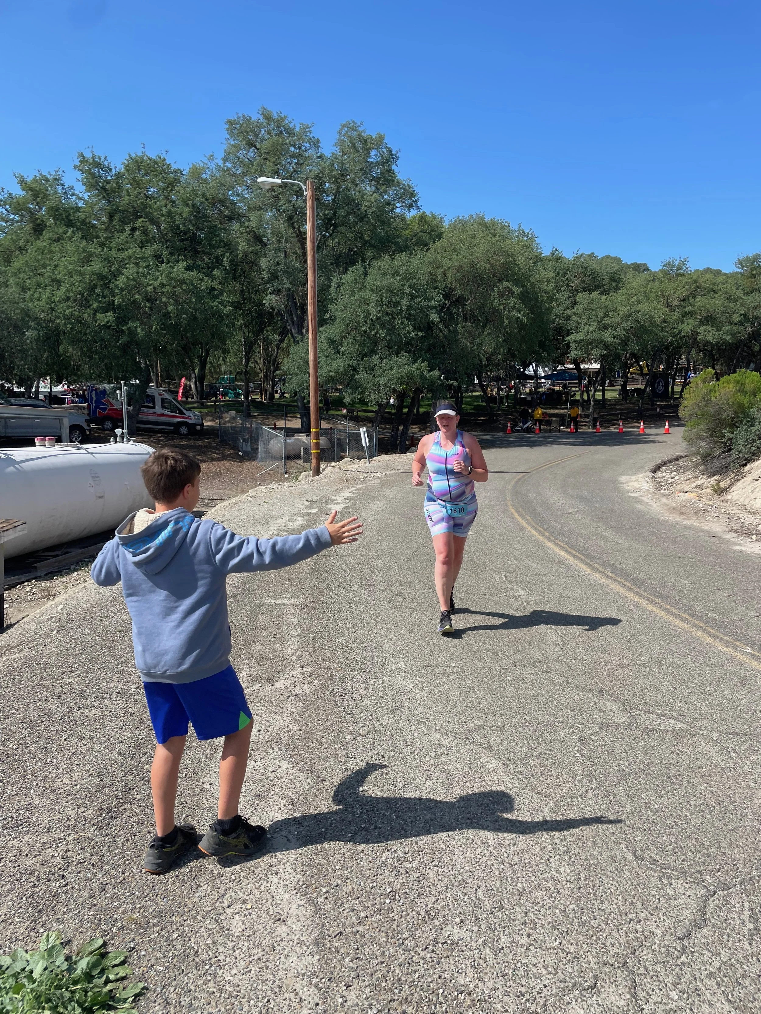 Dieses Wochenende war es dann soweit und unser gemeinsames Triathlon Festival Wochenende stand an. Am Lake San Antonio ca. 200km von hier entfernt wurde der sog. Wildflower Triathlon wieder belebt. Vor Covid war es ein Event mit 15.000 Teilnehmerns zur Spitzenzeiten und auch bekannten deutschen Profis. Wir haben uns für eine Kombination aus Camping und Sporting entschieden. Ich bin bereits Donnerstag mit unserem Camp losgefahren um uns einen guten Stellplatz am See mit Strom zu sichern. Katrin ist dann Freitagnachmittag mit unseren Jungs nachgekommen. Eine befreundete Familie kam dann am Abend auch noch dazu. Unser Stellplatz war vom Start/Zielbereich und der Transition Zone etwas entfernt. So hatten wir etwas Ruhe aber auch ein paar Kilometer zurück zu legen.