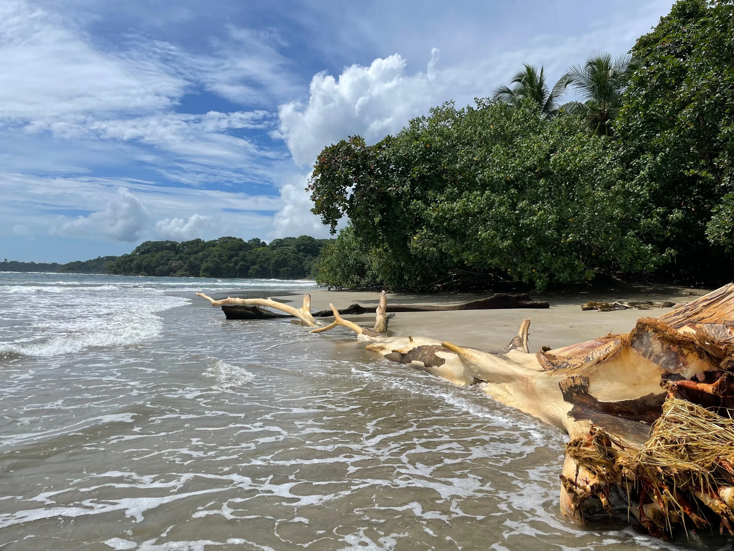Den Morgen und Vormittag haben wir am Strand bei traumhaftem Wetter verbracht. Wir sind den Strand in der Brandung noch ein Stück weitergelaufen. Zum Teil war die Strömung dann doch recht intensiv, so dass wir einmal die Jungs recht aktiv aus dem Wasser begleiten mussten. Zum Vormittag & Mittag sind wir mit dem Auto noch weiter nach Norden bin nach Manzanillo gefahren, hatten dort Lunch in einem kleinen gemütlichen, etwas abgewrackten Restaurant. Zum Cafe noch in einer kleinen „Bäckerei“ eingekehrt, bevor wir dann die dirt road zu einem kleinen Reservat in dem der seltene grüne Ara Papagei lebt genommen haben. Ein schönes Projekt, in dem die wenigen grünen Ara Papageien wieder aufgezüchtet wurden und werden. Zum Abendessen sind wir dann wieder mit den Hotelbikes nach Puerto Viejo gefahren. Dort haben wir dann in einem netten Lokal mit einigen weiteren Touristen, aber auch Ticos gut karibisch gegessen, bevor es dann wieder zurück ins Hotel ging. Gerade noch rechtzeitig, bevor ein starkes Gewitter eingesetzt hat, bei dem es wirklich gut war, dass wir nicht mehr unterwegs waren. Unseren letzten Karibikabend haben wir dann draußen geschützt vor dem Regen bei einem guten Glas Rum verbracht.