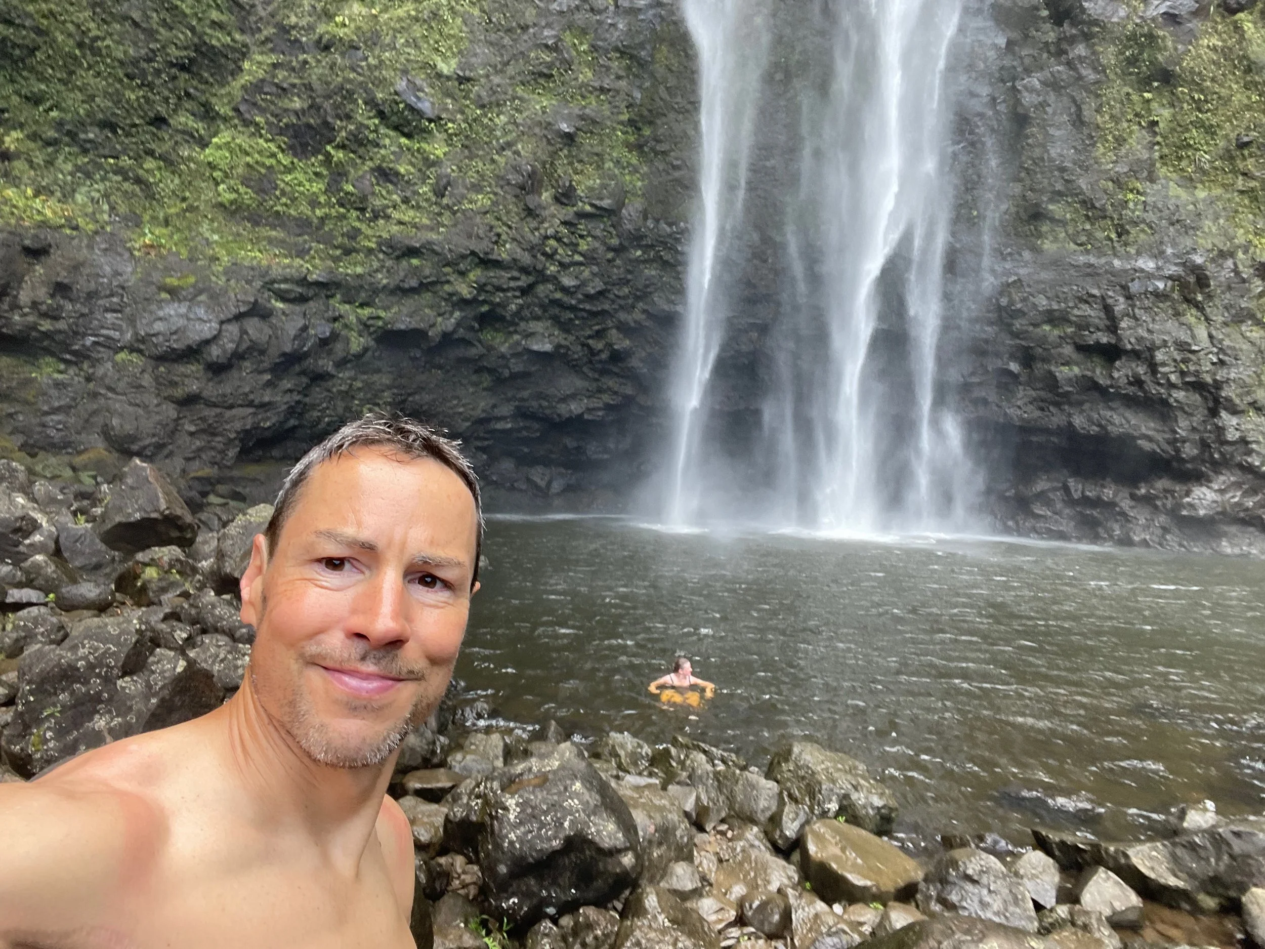 Nun kann ich verstehen warum der Hanakāpīʻai Falls Trail als eine der schönsten Wanderungen der Insel gilt. Sehr abwechslungsreich, mal an der Küste mit Mega Aussicht, dann aber auch wieder dichter Regenwald und viele Flussüberquerungen. Gekrönt von einem erfrischendem Bad unterhalb eines nennenswerten Wasserfalls. Den Jungs hat es die ganze Zeit Spaß gemacht so dass wir nach 5 Stunden Wanderung (6h Gesamtzeit) einen sehr besonderen Ostersamstag hatten. Zum Abendessen gehen waren wir dann zu Faul so dass es für die Jungs Chickcen Nuggets, Pommes aus dem Ofen und für uns frischen Fisch zum Abendessen gab.