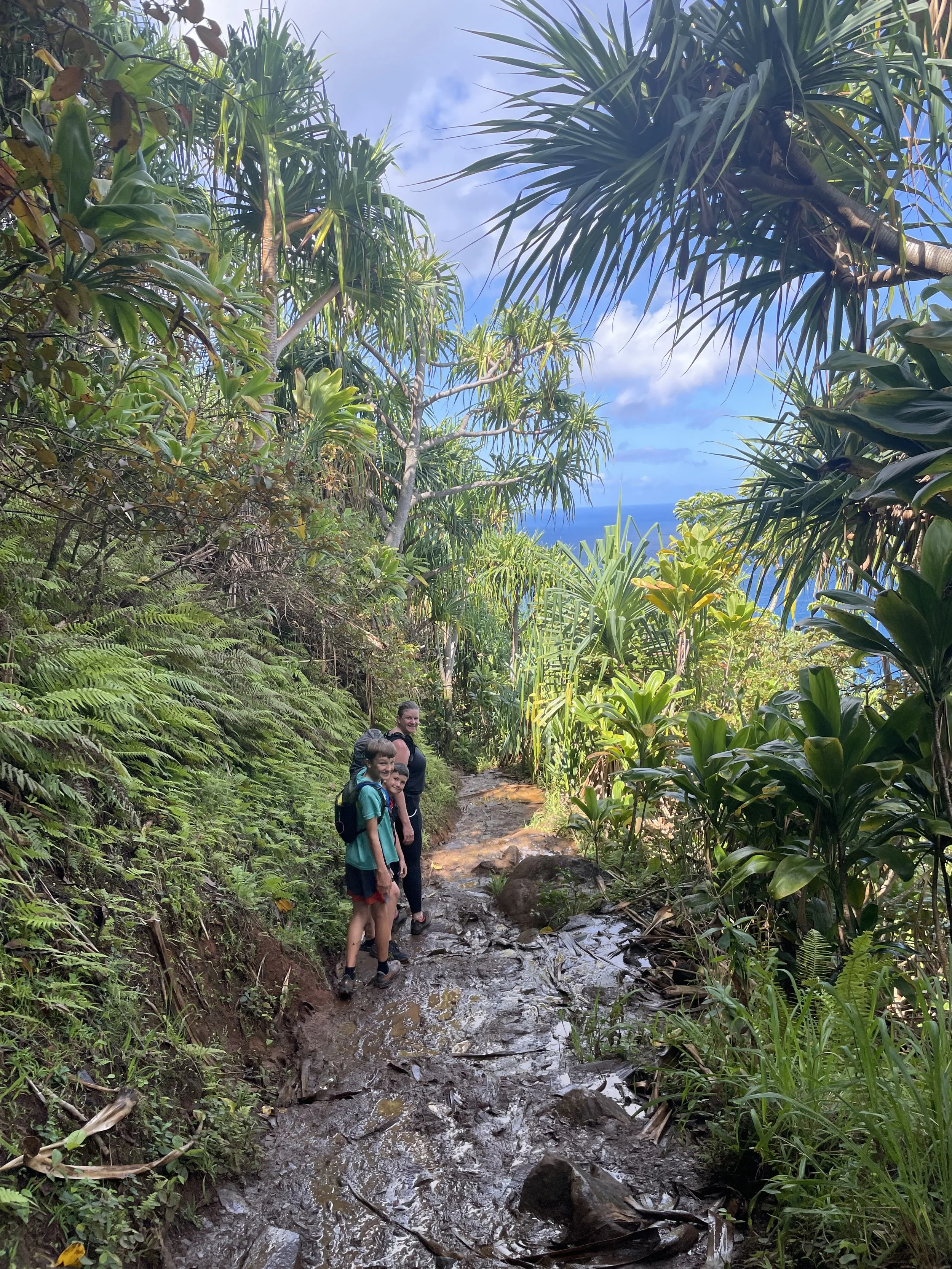 Durch die 3 Stunden Zeitverschiebung waren wir ohnehin früh wach. Ich musste noch kurz Arbeiten und dann ging es los auf unsere erste Wanderung. Eine etwas anspruchsvolle aber sehr lohneswerte Wanderung (Awa'awapuhi Trail) zu einem Teil der Insel der auch häufig von Helikoptertouren angeflogen wird. Ohne große Beschwerden haben die Jungs den Hike mitgemacht und wurden mit einer gigantischen Aussicht belohnt. Am Ende war es Raphael zu langweilig so dass er vorgejoggt ist…wieder zurück gab es für uns dann ein paar Fish Tacos und für die Jungs ein wohl verdientes Shaved Ice. Ich finde es ja nach wie vor nicht lecker aber die Kinder stehen drauf.