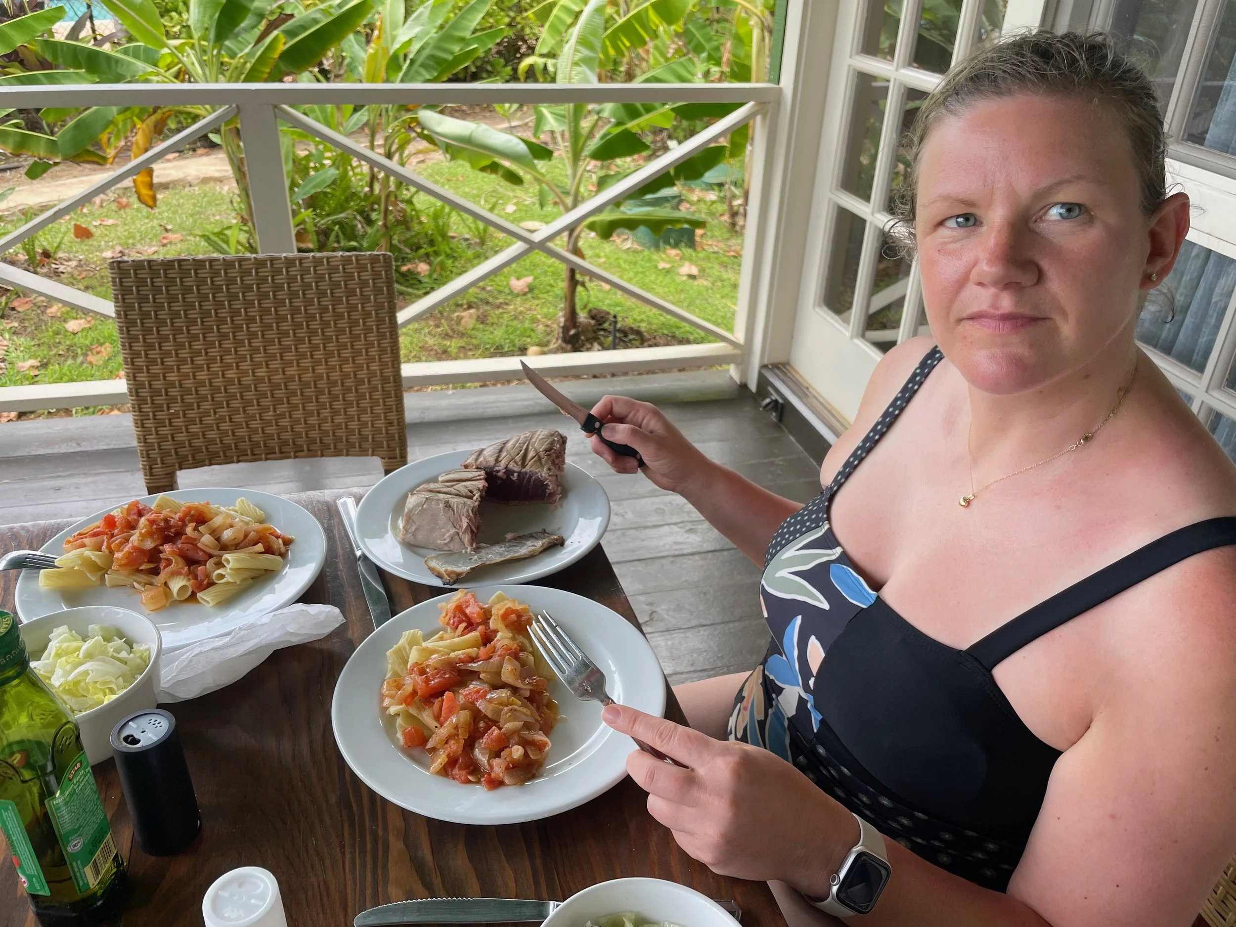 Heute haben wir den Aussichtspunkt vom Vortag von der anderen Seite betrachtet. D.h. wir sind zum Strand in der Nähe gefahren. Da der Weg dorthin auf den letzten paar Kilometern über eine recht ausgefahrene unbefestigte Straße ging war ich über unseren Jeep froh, die Eigentümer eher weniger. Wir waren die einzigern am Strand, das Wetter super und das Wasser warm (wobei wir aufgrund der Strömung nicht schwimmen waren). Nach etwas Strandfussball und Volleyball sind wir wieder zurück gefahren und waren schon bereit für unsere gebuchte Bootsfahrt am Nachmittag. Diese ist dann jedoch kurzfristig aufgrund des Wetter abgesagt worden. Letztendlich auch gut so denn am späten Nachmittag wurde es tatsächlich recht ungemütlich. Davor konnten Katrin und ich trottzdem noch ein kleine Runde Laufen gehen. Zum Mittag hatten wir dieses mal selber gekocht bzw. gegrillt. Sehr einfach aber unglaublich gut. Ein schönes Stück Thunfisch mehr oder weniger direkt von der Angel ;-)